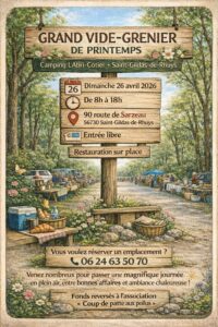 Le Rendez-vous des Chineurs Le Camping L’Abri-Côtier à Saint-Gildas-de-Rhuys organise un grand rendez-vous printanier ouvert à tous, le dimanche 26 avril 2026, de 8h à 18h. Situé au 90 route de Sarzeau, cet événement se déroule dans un cadre